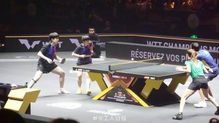 3比1!第三局对于两对组合来说都至关重要,每每拿到关键分,林高远都会握拳呐喊。他和刘诗雯以11比7扳回一城。不过,很快在第四局袁励岑/王艺迪就以流畅的配合11比3取胜,大比分3比1领先。