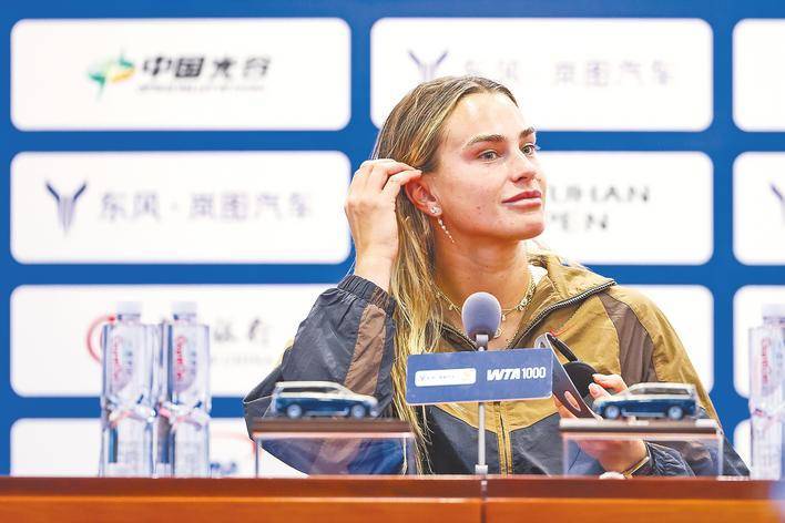 10月5日,武网媒体见面会上,萨巴伦卡对连续第四次夺冠显得信心十足。(武网组委会供图)